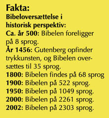 – For nogen år siden tog det i gennemsnit 20 år at oversætte Bibelen til et helt nyt sprog. Nu er tiden halveret, blandt andet ved hjælp af datateknologi. Udfordringen for bibelselska-ber verden over, er at fortsat øge tempoet, siger Dag Kjær Smemo.
