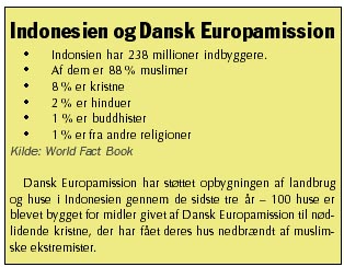 Historien er den samme mange steder i Indonesien. For nylig skød man fra en helikopter på nogle kristne, som indsamlede mad i en have, og dræbte to af dem. I kølvandet på det blev 22 kirker lukket, og 50.000 kristne flygtede ind i junglen. På Vestjava i Bogor-Bandung-området lige uden for Indonesiens hovedstad Jakarta er over 50 kirker enten blevet ødelagt eller lukket i år.