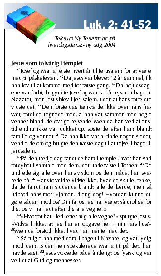 – Derimod kunne jeg godt rejse nogle spørgsmål, når det gælder hans jordiske forældres reaktioner. Jeg har godt hørt om mennesker, der glemmer deres børn, når de kører hjem, men at glemme en 12-årig er for mig noget utroligt. Når der står, at Jesus blev i Jerusalem, uden at hans forældre vidste det, og at de en hel dag ikke tænkte over hans fravær, så siger det for mig mere om forældrene end om Jesus.