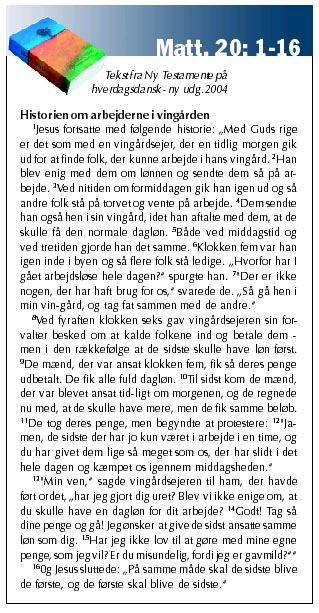 - At Guds retfærdighed set med jordiske øjne er hamrende uretfærdig. Der findes to retfærdighedsbegreber: Den menneskelige retfærdighed, som handler om millimeterretfærdighed og Guds retfærdighed, som handler om kærlighed. Og i denne tekst er de to b