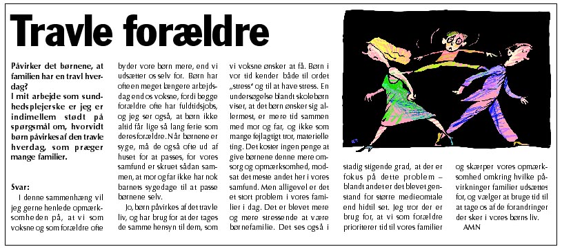 Der er vigtigt for os her at understrege, at enhver situation skal ses i hele dens sammenhæng for at give den nødvendige forståelse. Og dette vil naturligvis ikke være muligt i brevkasseform. Det betyder med andre ord, at vi vil besvare jeres spørgsmål kort og konkret, men vil her gøre jer opmærksom på, at det altid vil være en god idé, at I sammen i familien forsøger at afdække sammenhængen. I er de nærmeste til at kende jeres hverdag, familiesituation og eventuelle forandringer i jeres liv. Så melder der sig spørgsmål i retning af, hvorfor f.eks. et lille barn, som altid tidligere uden problemer har sovet i sin egen seng, pludselig ikke kan det mere