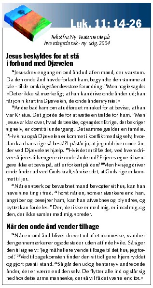 – Når der sker noget godt i Guds rige, så er der som regel også altid nogen, som prøver at mistænkeliggøre det. Sådan var det på Jesu tid, og det sker også i dag. Det er desværre ofte vilkårene, når der sker noget godt,, men vi oplever her Jesus gå imod sine modstandere, for det, de gav udtryk for, var ikke blot en spørgen efter sandheden. Det var et direkte angreb.