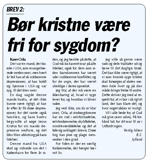 Alligevel må vi ikke glemme, at der går en vidunderlig optimisme igennem hele Bibelen. Den giver os løfter med håb om helbredelse og udfrielse af lidelsen, men nogle gange sker det først ved den legemlige død. Der kan opstå et problem, hvor helbredelsens og udfrielsens budskab overdrives og kommer væk fra virkeligheden, som også er den bibelske virkelighed. Der hvor man forkynder, at smerte, lidelse og synd ikke eksisterer mere, hvis troen blot er stor nok.