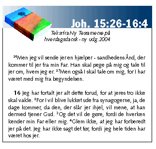 – Jesus siger her, at disciplene har brug for en hjælper, for de vil komme ud for svære vanskeligheder. Hvorfor? Jo, de bærer Jesu navn, og de tilhører den verden, vi ikke kan se med vore fysiske øjne. Jesus advarer dem og siger, at denne verdens fyrste, den onde, geniale hersker, vil komme, og derfor har de brug for Helligånden.