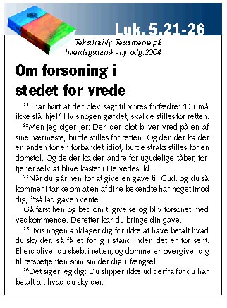 Rick Warren fra Saddleback Church i Californien skriver om syv skridt til forsoning i sin bog Det målrettede liv (Kan bestilles hos Udfordringen)Det kan altid betale sig at genoprette fællesskaber. Fordi livet drejer sig om at lære at elske, ønsker Gud, at vi skal værdsætte relationer og arbejde på at bevare dem. I stedet for at opgive dem, så snart der er en lille