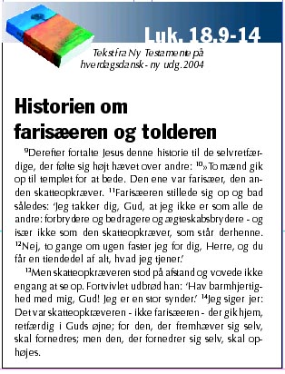 – Farisæeren mener, at hans gerninger frelser ham. Hvor skal han sætte ind, hvis han vil gå retfærdiggjort hjem til sit hus?