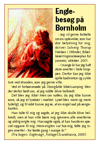 (Fra bogen: Englevagt – 108 beretninger om menneskers møder med engle, v. Kirsten I. Hoffmann, Forlaget Scandinavia, 2005, 185 sider, 148 kr.).