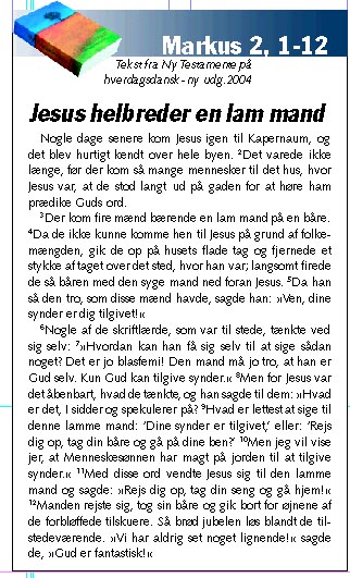 Jesus så, hvad der skete og da han så deres tro, sagde han til den lamme: Stå op, tag din seng og gå! Straks blev manden frisk tog sin seng og gik!