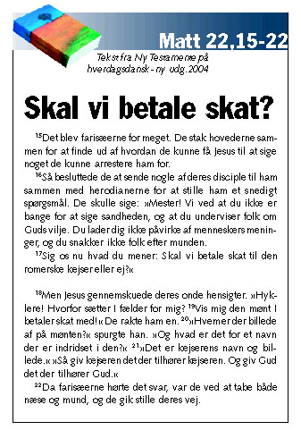 Helt konkret spurgte de Jesus, om man skal betale skat. Også i dag er der mennesker, der stiller spørgsmålstegn ved, om man skal betale skat. Hvad er Jesu svar til os i dag?
