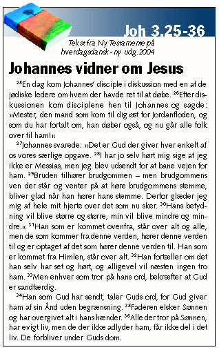 Her i dette afsnit af Bibelen er han vennen, der glædede sig oprigtigt, da han hørte brudgommens stemme. Så Johannes stod midt i Guds vilje og frydede sig over det. Også selv om han vidste, at hans opgave snart var slut.