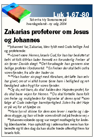 – Den fortæller mig, at Gud opfylder profetiske budskaber. Der står blandt andet noget om, at Gud aldrig glemmer det, han har lovet. Det, Gud sagde til Abraham, er ikke bare ord, der hænger i luften. Men det, som alle profetierne i Det Gamle Testamente havde peget hen på, får nu en helt konkret opfyldelse gennem Jesus og Johannes.