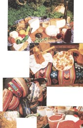 Det var i alt væsentligt de omkringdragende nomaders festlige måltid. Af det korn, man byttede sig til hos ager- brugerne, bagte man brød i varm aske. Oksekød blev kun spist af unge dyr, i øvrigt foretrak man får og geder, som også leverede mælken. Det vides ikke, om man kunne lave smør, men flere slags surmælksretter var populære.