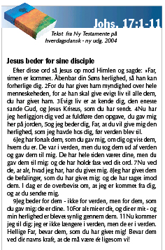 Men der er også noget gådefuldt over tiden, for alle tider er ikke ens. Nogle tider er særlige. Søndagens tekst begynder med, at Jesus vendt mod himlen siger: Fader, timen er kommet. Den aften var en ganske særlig tid, hvor Jesus gav sine disciple et glimt af evigheden. Han ville ikke tage dem ud af verden, men netop betro dem opgaver i verden og dog ville han give dem et liv, der ikke var af verden, et evigt liv.