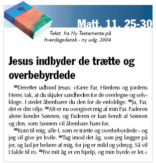 Jesus lover ikke, at han vil befri os for alle byrder. Men han lover, at vi må komme til ham både med os selv og vore byrder.