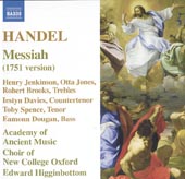 Higginbottoms indspilning udmærker sig ved at bruge en version af kompositionen, Händel skrev i tilknytning til påsken 1751. Her er der udelukkende brugt drenge- i stedet for kvindestemmer, hvilket giver et noget andet lydbillede, end man er vant til.