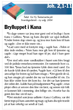 og kontaktperson for Dansk Oase på Fyn.Hvad betyder denne tekst for dig?- I første omgang kan det virke som en provokation, at Jesus gør vand til vin. Det lyder som om, at de allerede har fået så hatten passer, så hvorfor skulle de have mere vin? Det passer ikke helt ind i vores kristne moralkodeks med afholdenhed og lignende.