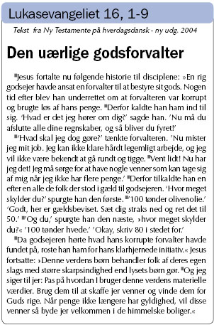 Her kommer Jesu pointe: Pas på, hvordan I bruger pengene. Brug dem til at skaffe jer venner.