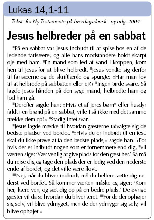 Ved den samme lejlighed gjorde Jesus pinlige observationer i sine omgivelser. Han havde også øjne i hovedet. Han så, at det, der virkelig talte, var plads og position. Det ligner noget, man kunne observere i dag. Det gælder om at vise andre sit værd uden tanke for, at det kunne nedgøre andre. Det er de spidse albuers politik. Jeg vil frem, jeg vil ses!