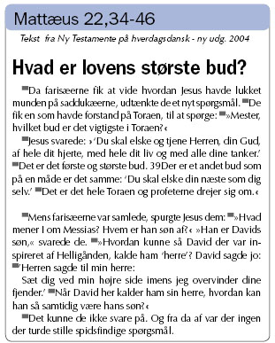 Det, der går galt for formel-elskende personer i troens verden, er det samme, som går galt for tekstens skræmmebillede – farisæerne. De ville have at vide, hvilket bud der var det største. Hvad er det mest dækkende for, hvad vi skal gøre? Får vi fat i det bud, så bliver det meget nemmere at styre vores tilværelse.