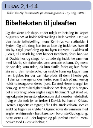 Hør det så igen: Frygt ikke! Se, jeg forkynder jer en stor glæde, som skal være for hele folket: I dag er der født jer en frelser i Davids by; han er Kristus, Herren.