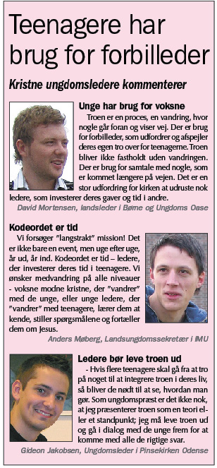 – Relationer betyder rigtig meget for teenagere. Derfor handler det om, at præster og menighedsledere opbygger relationer til de unge og fortæller den store historie med den lille historie det vil sige sig selv: Dvs. illustrerer undervisningen med egne oplevelser, og med hvad troen reelt betyder i deres eget hverdagsliv. Der må ikke ske en adskillelse her – de unge spejler sig meget i de voksnes historier, og hvordan troen udleves.