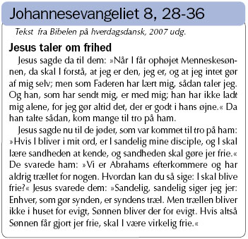 Jesus sagde: I skal lære sandheden at kende, og sandheden skal gøre jer frie (Johannesevangeliet 8,32).