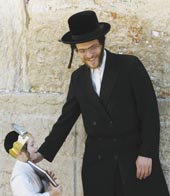 Når ultraortodokse jødiske børn modtager deres første bønnebog, er det tradition at tage op til Grædemuren og få taget et portræt. Det bliver gjort i dag, som jeg er her. Drengebørnene stråler af stolthed, og deres lærere stråler med. Det er en stor dag for dem.