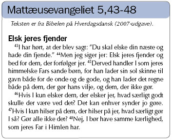 Det var denne urgamle og kun alt for velkendte menneskelige virkelighed, som Jesus henviste til, når han citerede den gamle religiøse tradition: at man skulle elske sin næste og hade sin fjende.