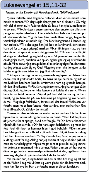 Vi kender historien som lignelsen om den fortabte søn. Historien kunne også hedde lignelsen om den vrede bror med fokus på den søn, som blev hos sin far, men alligevel må have levet langt borte fra ham i sin helt egen verden.