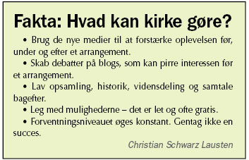 Alligevel er kirken nødt til at opprioritere kommunikation og medieforståelse. Og det æstetiske er også vigtigt. Man kan godt se forskel på noget, der er lækkert, og noget, der ikke er. Især hvis man er opvokset i en visuel kultur, sagde Christian Schwarz Lausten.