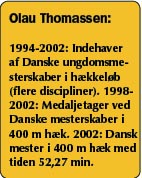 Olau Thomassen gennemførte da også træningsprogrammet, og han vandt suverænt det danske seniormesterskab i 400 meter hæk i 2002.