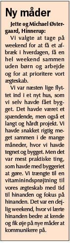 Imellem oplæggene udfordres man som ægtepar til at arbejde med temaerne gennem opgaver, som giver hjælp til samtale.