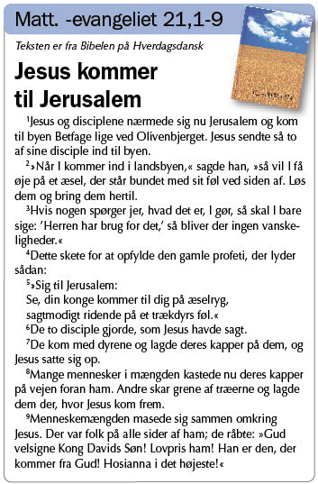 Skarerne blev grebet af situationen, de fornemmede noget, der var større end dem selv, og de råbte: Hosianna – dvs. vær hilset du Davids søn – for velsignet den, der kommer i Herrens navn.