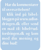 Også en kommentar fra mig til din bibeloversættelse. Jeg er gået ind i oldemor-stadiet. En ting forstår jeg ikke, det er &%#!! For mig må det være et bandeord, og det hører i alt fald ikke hjemme i en bibeloversættelse. Det tror jeg godt, du kan slette.