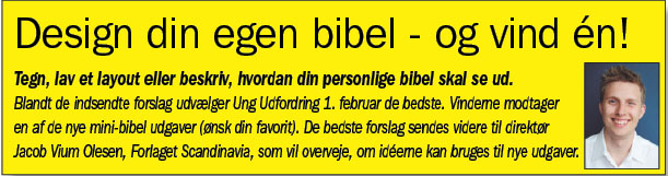 – Ja, og så må der godt være et stik-ordsregister bagi, så man fx kan slå op under krise eller sorg og finde de bibelvers, der kan hjælpe én i den situation, foreslår Sidsel og henviser til Gideonitternes ny testamente, som har et par hjælpe-afsnit. (Gideonitterne deler gratis små ny testamenter ud på fx hoteller og skoler.)