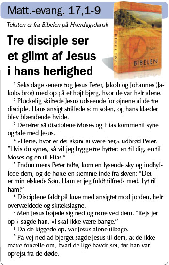 Peter får dog en brat opvågnen, for pludselig buldrer Guds stemme over bjerget: Det er min udvalgte søn, hør ham!