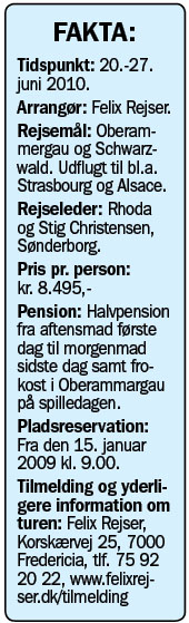 Sommeren 2010 byder Udfordringen på læserrejse til passionsspillet i Oberammergau, ferie i Sydtyskland og fransk visit til Strasbourg.Tag med Udfordringen og Felix Rejser til Oberammergau og oplev det enestående passionsspil i de historiske rammer i Sydtyskland.