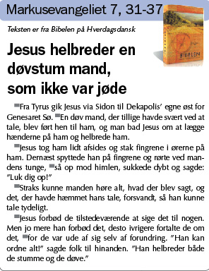 Historien om Jesus, der helbreder en døv, er endvidere blevet misbrugt gennem mange år. Man har sagt: Åh, de stakkels døve. De kan jo ikke høre, og hvor var det godt, at Jesus gik hen og hjalp en af dem, så han kom til at høre igen.