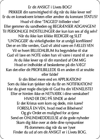 Is your FACE in the BOOK of Life? (på dansk: er dit NAVN i Livets BOG?).