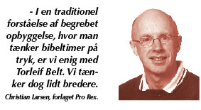 – I en traditionel forståelse af begrebet, hvor man tænker bibeltimer på tryk, er vi enige med Torleif Belt, siger indehaveren af forlaget Pro Rex, Christian Larsen.