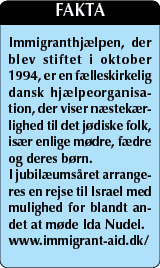 – I jubilæumsåret kan vi konstatere, at Immigranthjælpens arbejde er lige så relevant, som da vi begyndte for 15 år siden. Vort formål vil også i fremtiden være det samme. I samarbejde med Ida Nudel sætter vi dog især fokus på nødhjælp.