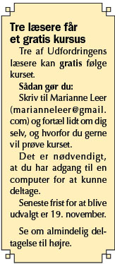 Normal pris 1.495 kr. – hvis du holder Udfordringen kan du få det til kr. 995! Kursusstart er d. 23. november.