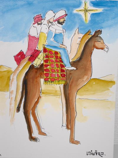 De vise mænd så stjernen og fulgte den. De brød op og begav sig på vej ud i det ukendte. Og til sidst fandt de, hvad de søgte. I stalden i Betlehem lå kongesønnen i en krybbe, og de faldt ned og tilbad barnet. De åbnede for deres gemmer og frembar deres gaver til barnet.