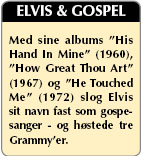 De fleste forbinder Elvis Presley med rock. Men det var for sine gospel-indspilninger, han blev prisbelønnet. Den 8. januar ville han være fyldt 75 år.Historien om Elvis Presleys liv er for altid skrevet ind i musikhistorien.