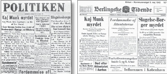 På landevejen mellem Silkeborg og Århus blev Munk kommanderet ud af bilen og skudt ned bagfra. Nazisterne satte en seddel på ham, hvor han blev beskyldt for at være tyskervenlig. Men befolkningen gættede hurtigt, hvem der stod bag. Og drabet på Munk gjorde ham til martyr og udødelig som digter.