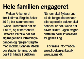 Antikforretning? Snarere en livsstilsbutik, men altså en livsstilsbutik som har det helt særlige kendetegn, at de udbudte varer for en stor dels vedkommende består af religiøse kunstgenstande. Sådan kan man beskrive butikken Frøken Anker.