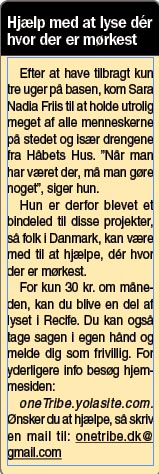 Jeg befandt mig i sommer i Brasilien, nærmere betegnet Recife. Byen er meget fattig, og det meste af byen er slum. Her mødte jeg en dansker, ved navn Ulrik, som havde fundet dét sted for mange år siden, hvor han kunne lyse.