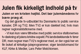TV2s regioner sendte 54 udsendelser med kristent indhold i julemåneden. TV2 Østjylland fører.