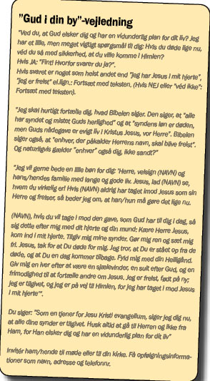 – Men evangelisationsholdet har trykt 2.000 eksemplarer af et hæfte, der i tre enkle punkter viser vejen videre: ved at bede til Gud, læse Guds Ord og tage kontakt med kristne venner og menigheder, dér hvor de bor, siger Tore Kransberg.