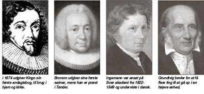 Med berigelse, nostalgi og med frembringelse af minder fra barndommens uskyldige dage synges de gamle salmer stadig i kirken med glæde.Danmark har fire store kendte salmedigtere. Ingen af dem er nulevende, men de har mange salmer med i Den Danske Salmebog, og deres salmer er kendt og elsket af mange. De fire levede for over hundrede år siden. Den ældste, Thomas Kingo, levede i 1600-tallet, Brorson levede i 1700-tallet, og B. S. Ingemann og N. F. S. Grundtvig levede i 1800-tallet.